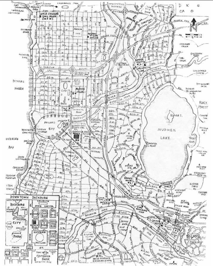 In de omgeving van het Duck-Universum is Duckstad de bekendste stad, deze grenst ondermeer aan het rivaliserende Gansdorp (oosten). Het is lastig om een kaart te maken van het huidige Duckstad, maar er zijn wel ontelbaar veel feiten over de stad ten opzichte van de ligging. Hier volgen er een paar: